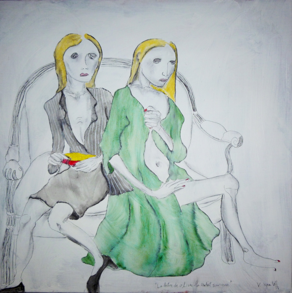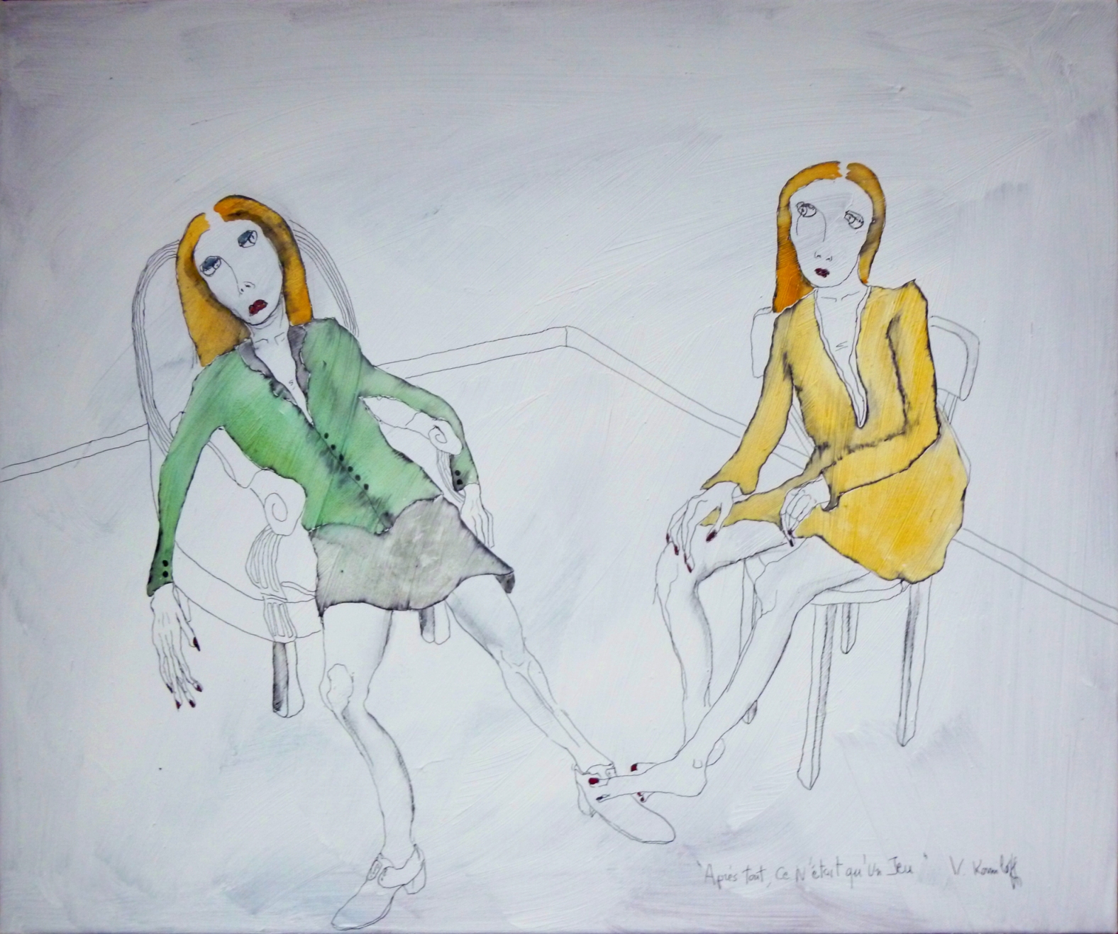 (Gesso, acrylique, aquarelle et encre de Chine sur toile, 55/45cm)