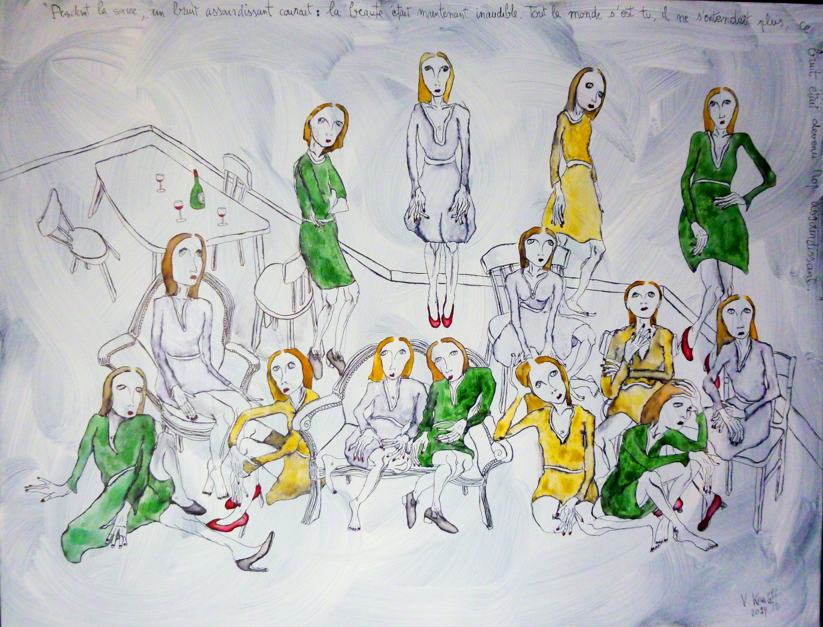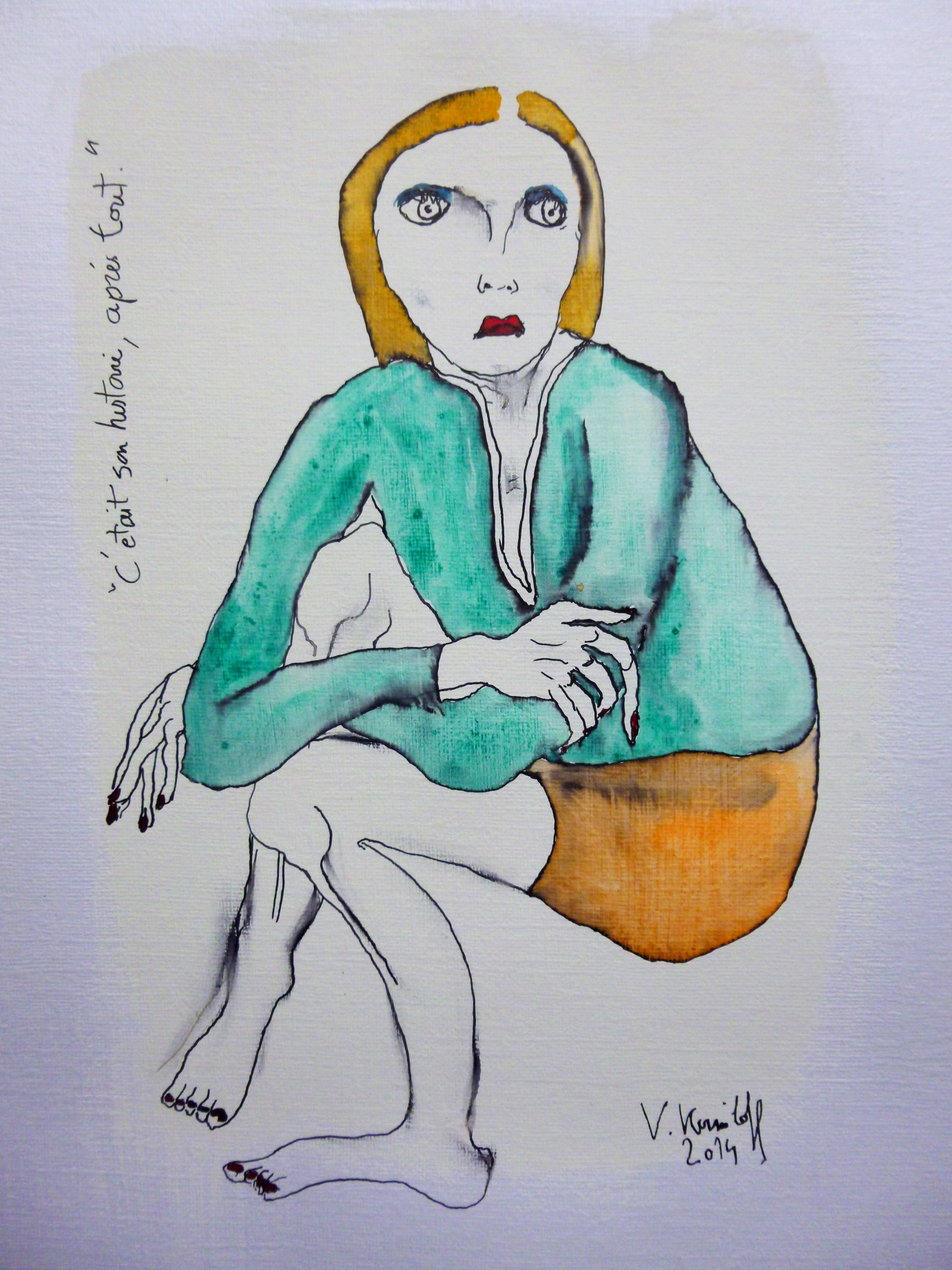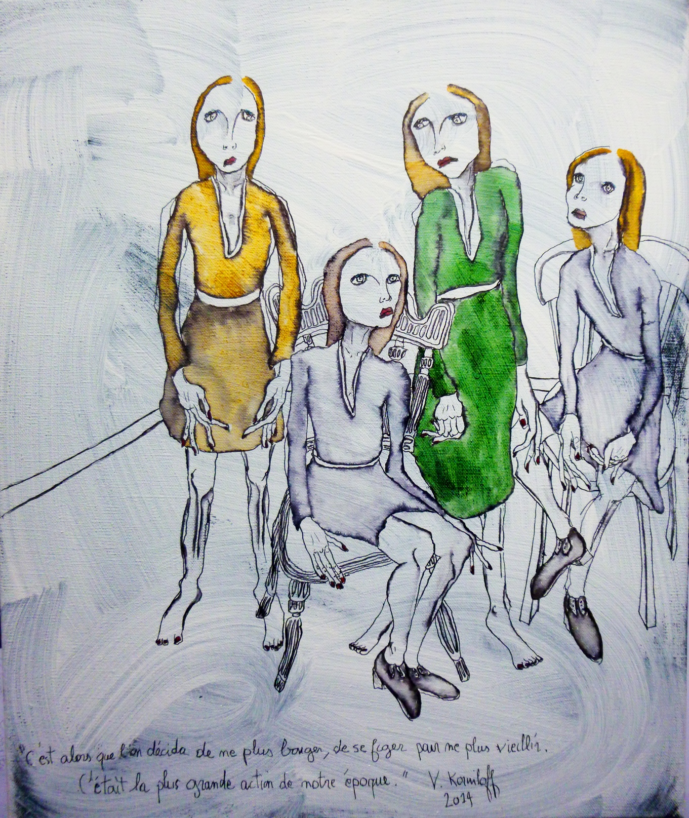 (Gesso, acrylique, aquarelle et encre de Chine sur toile, 90/70cm)