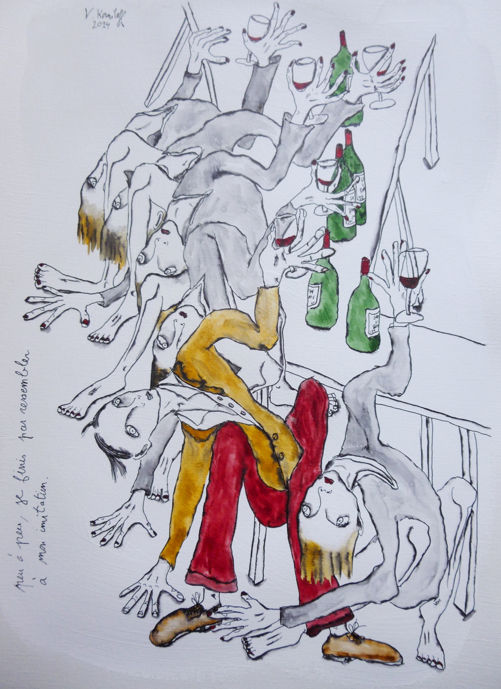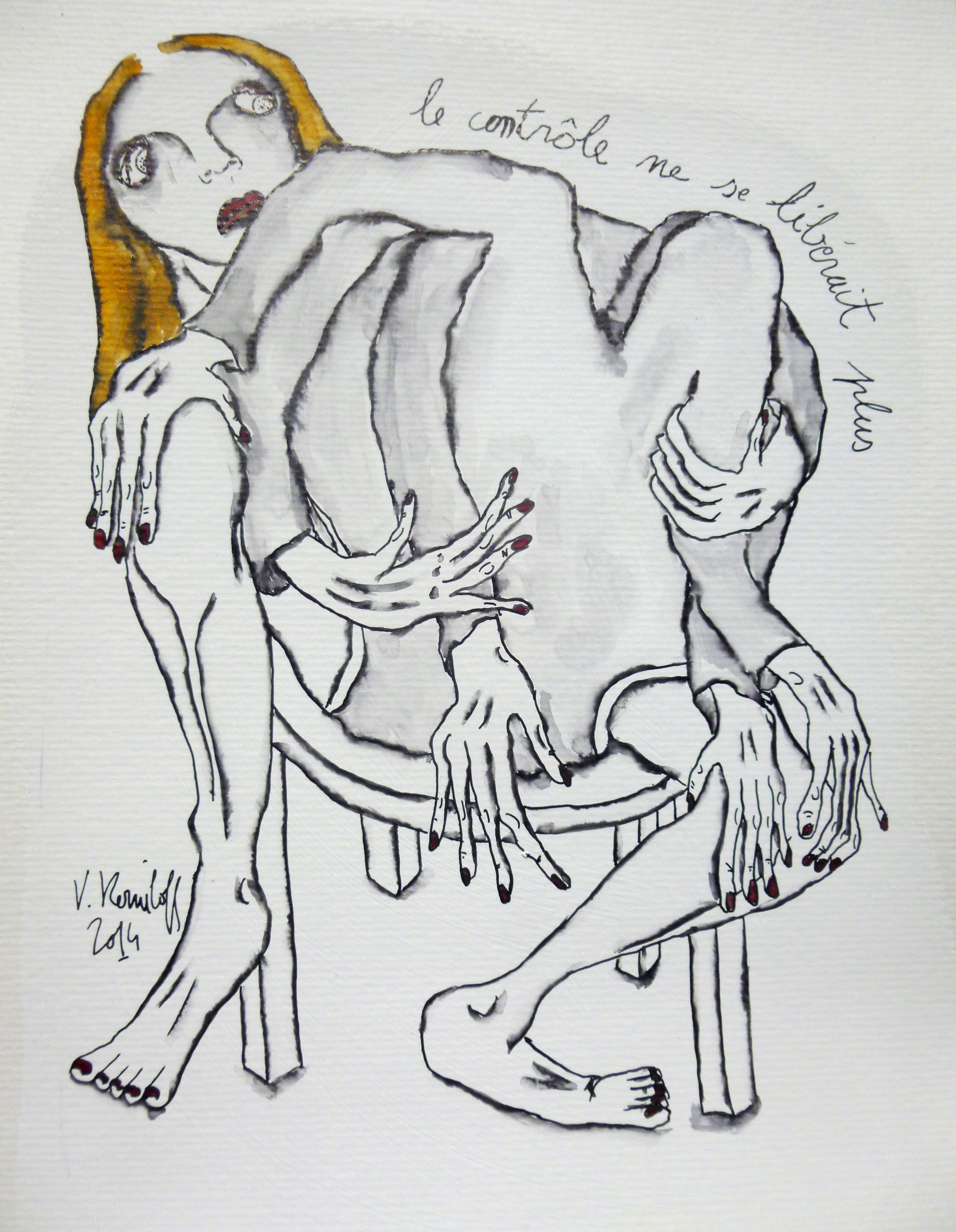 (gesso, acrylique, aquarelle et encre de Chine sur papier, 42/30cm.)