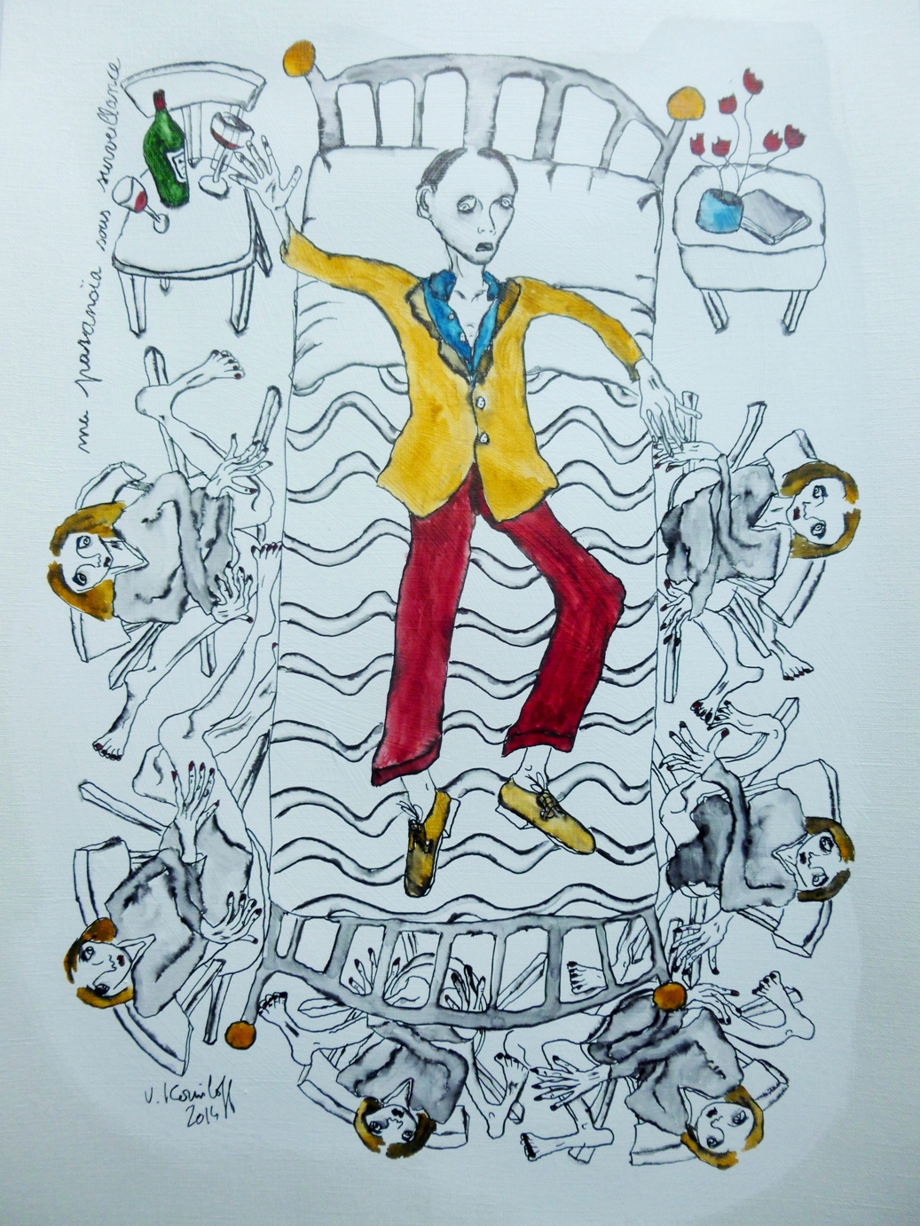 (gesso, aquarelle, acrylique et encre de Chine sur papier, 42/30cm.)