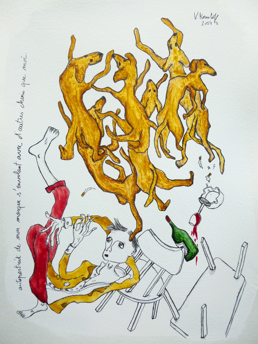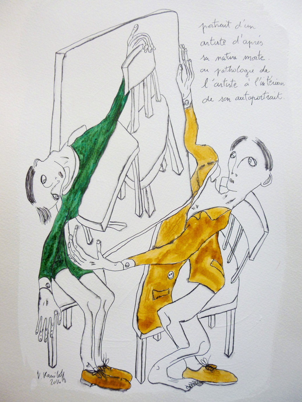 (Gesso, acrylique, aquarelle et encre de Chine sur papier, 40/30cm.)
