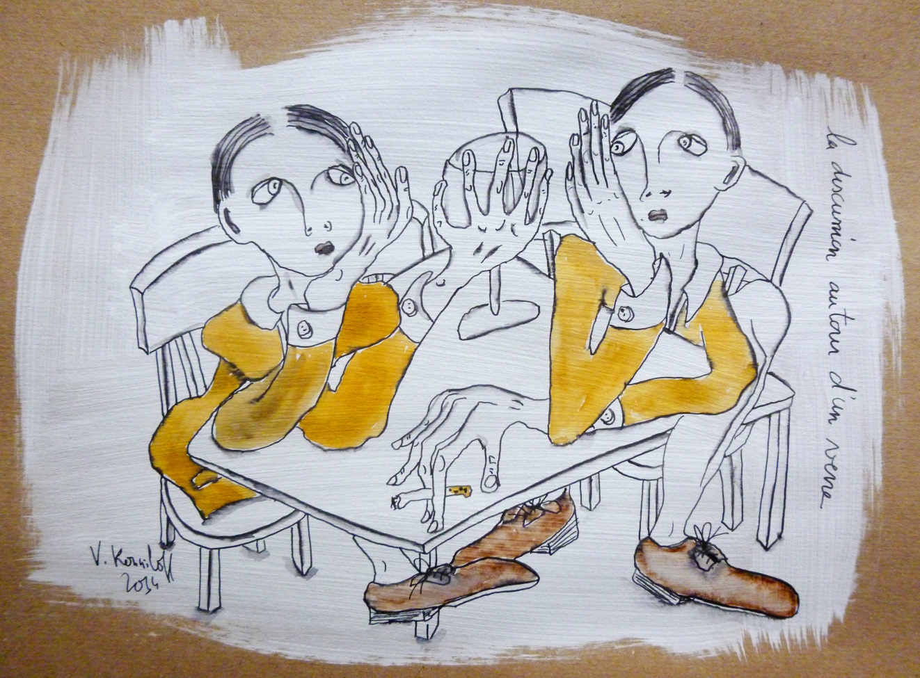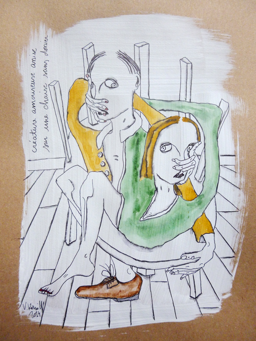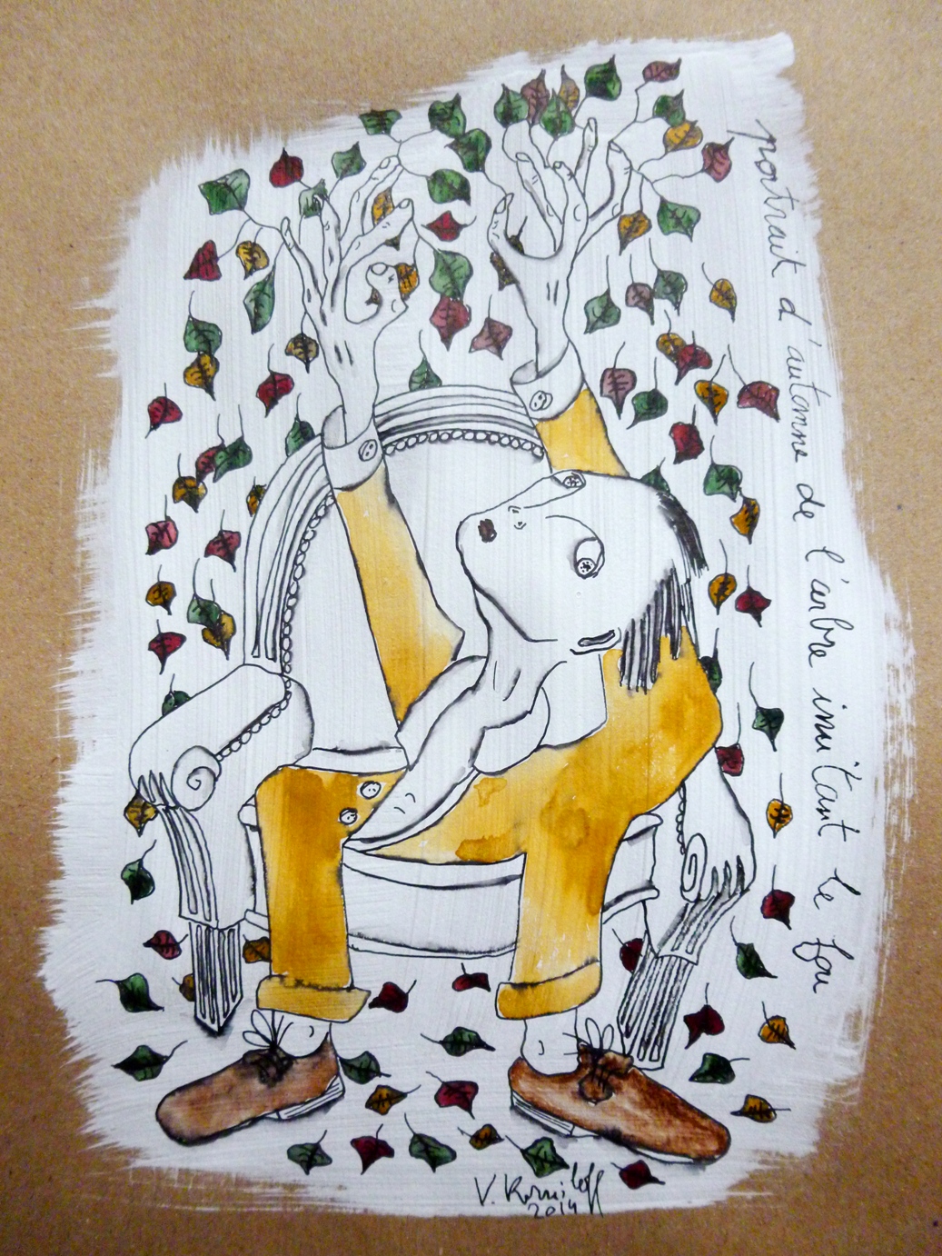 (gesso, acrylique, aquarelle et encre de Chine sur papier, 40/30cm.)