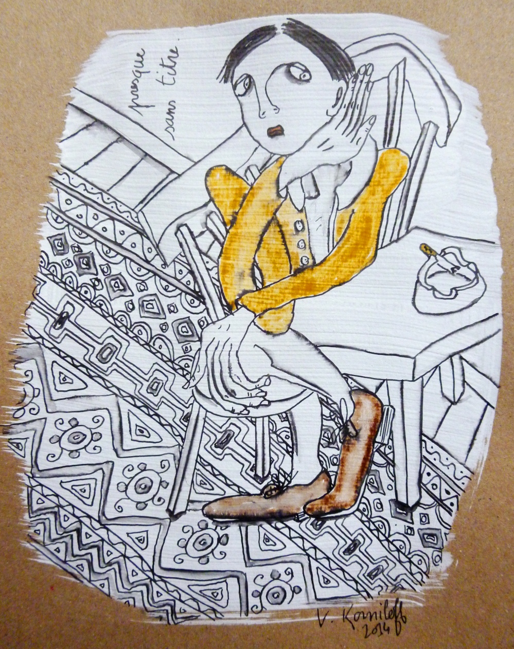 (gesso, acrylique et encre de Chine sur papier, 25/20cm.)