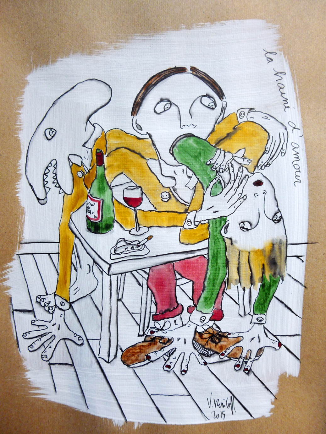 (gesso, aquarelle, acrylique et encre de Chine sur papier, 30/20cm.)