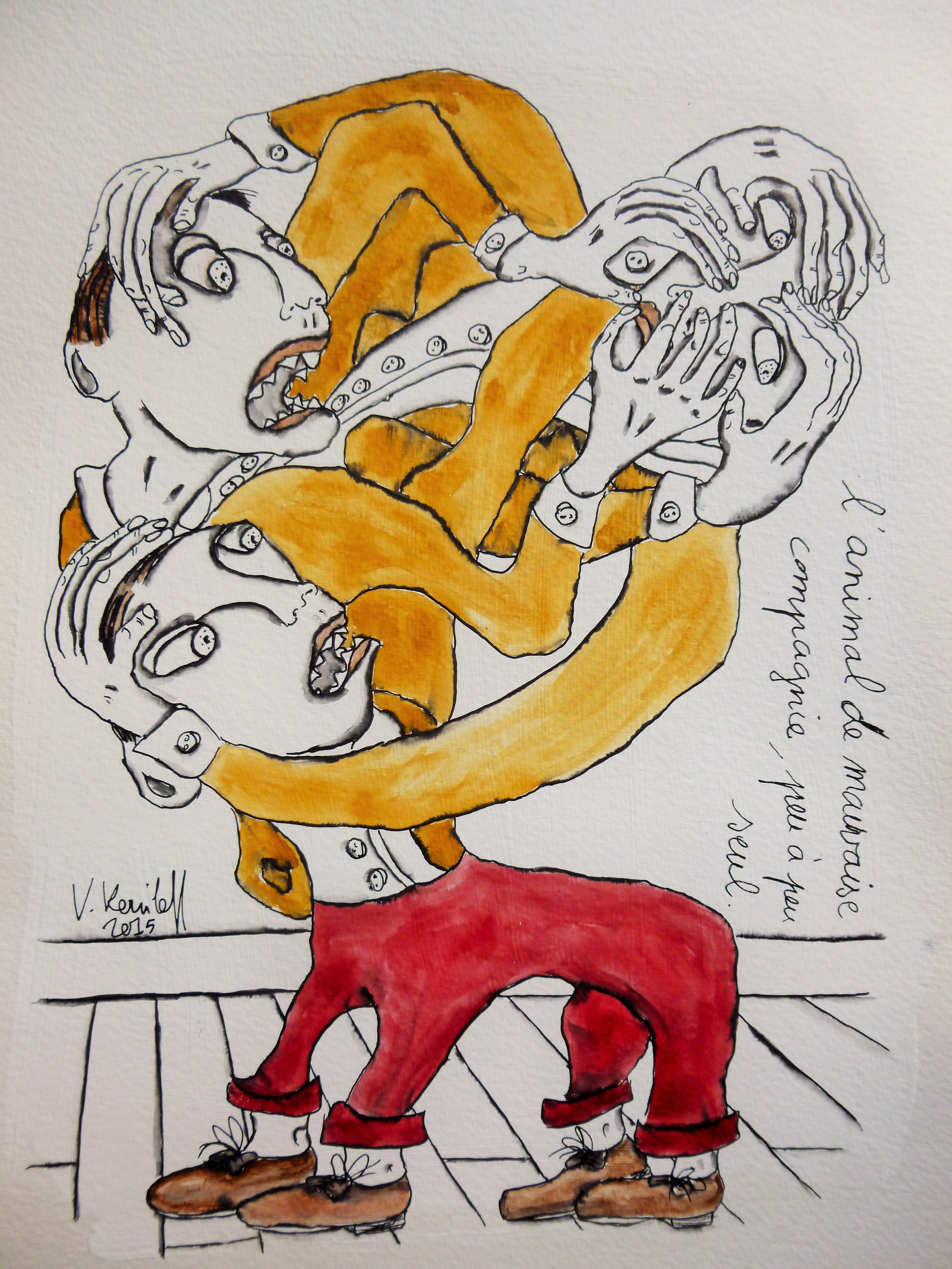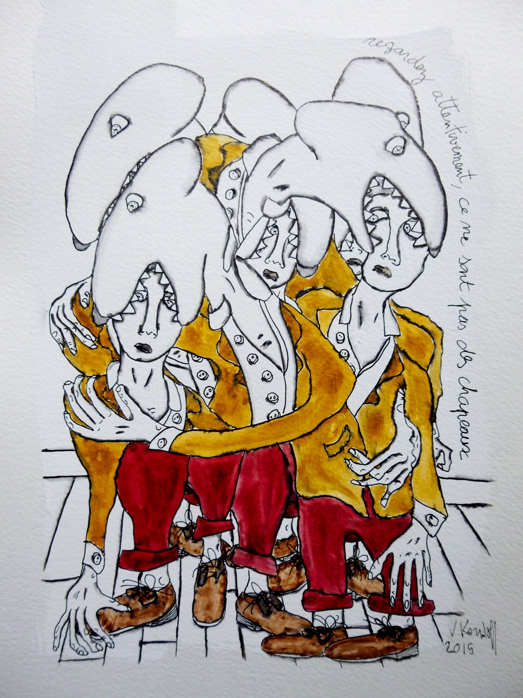 (gesso, aquarelle, acrylique et encre de Chine sur papier, 30/20cm.)