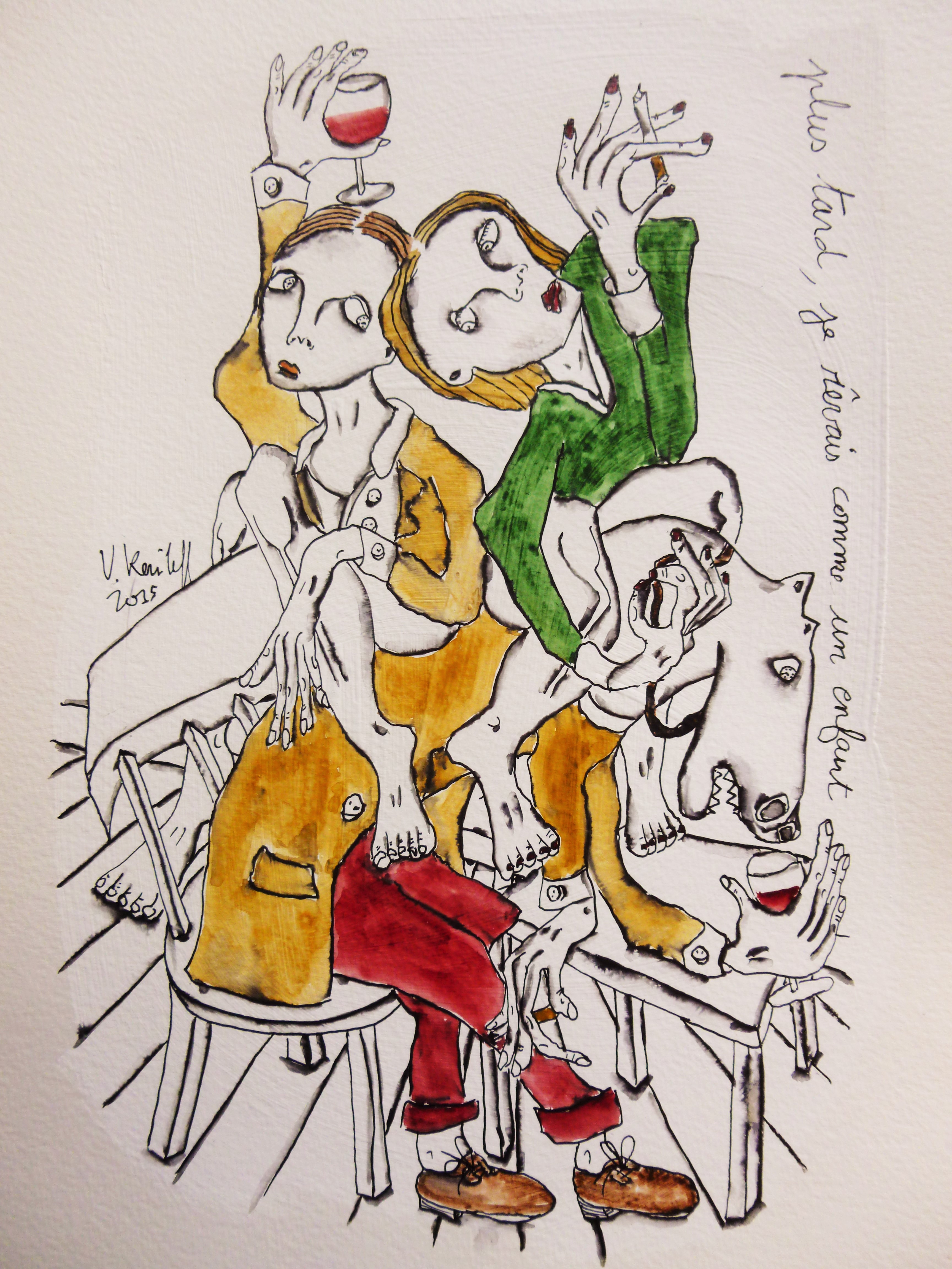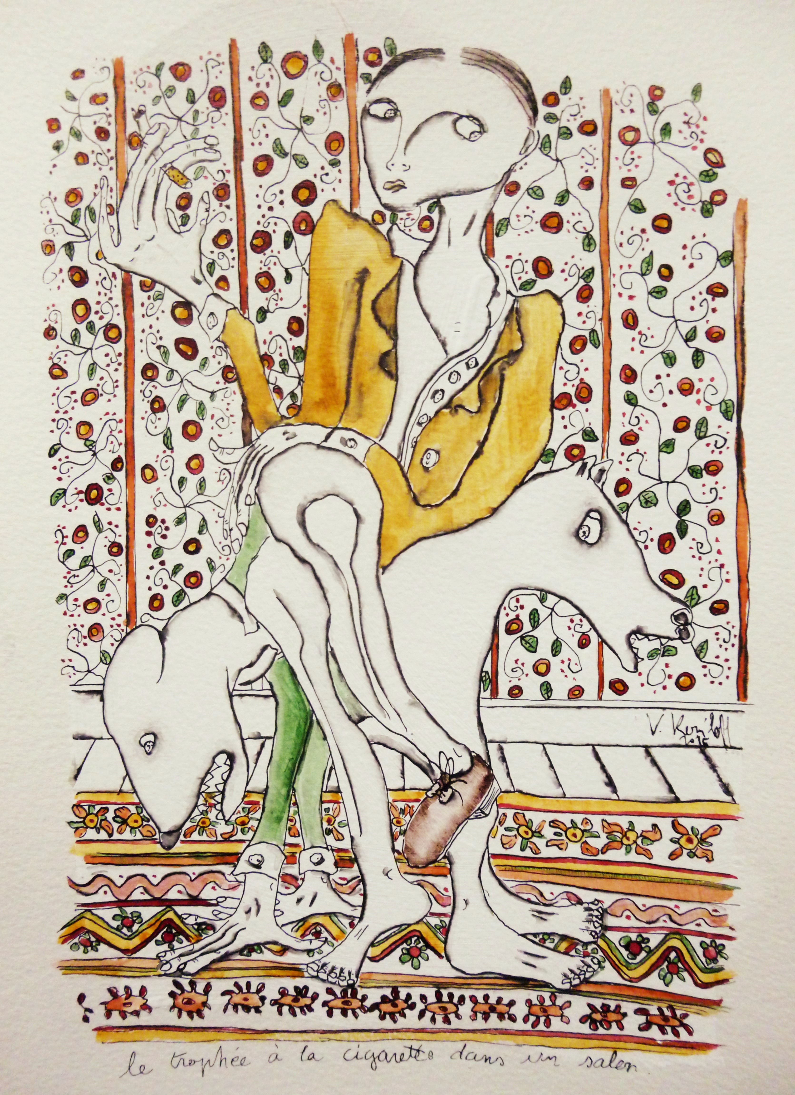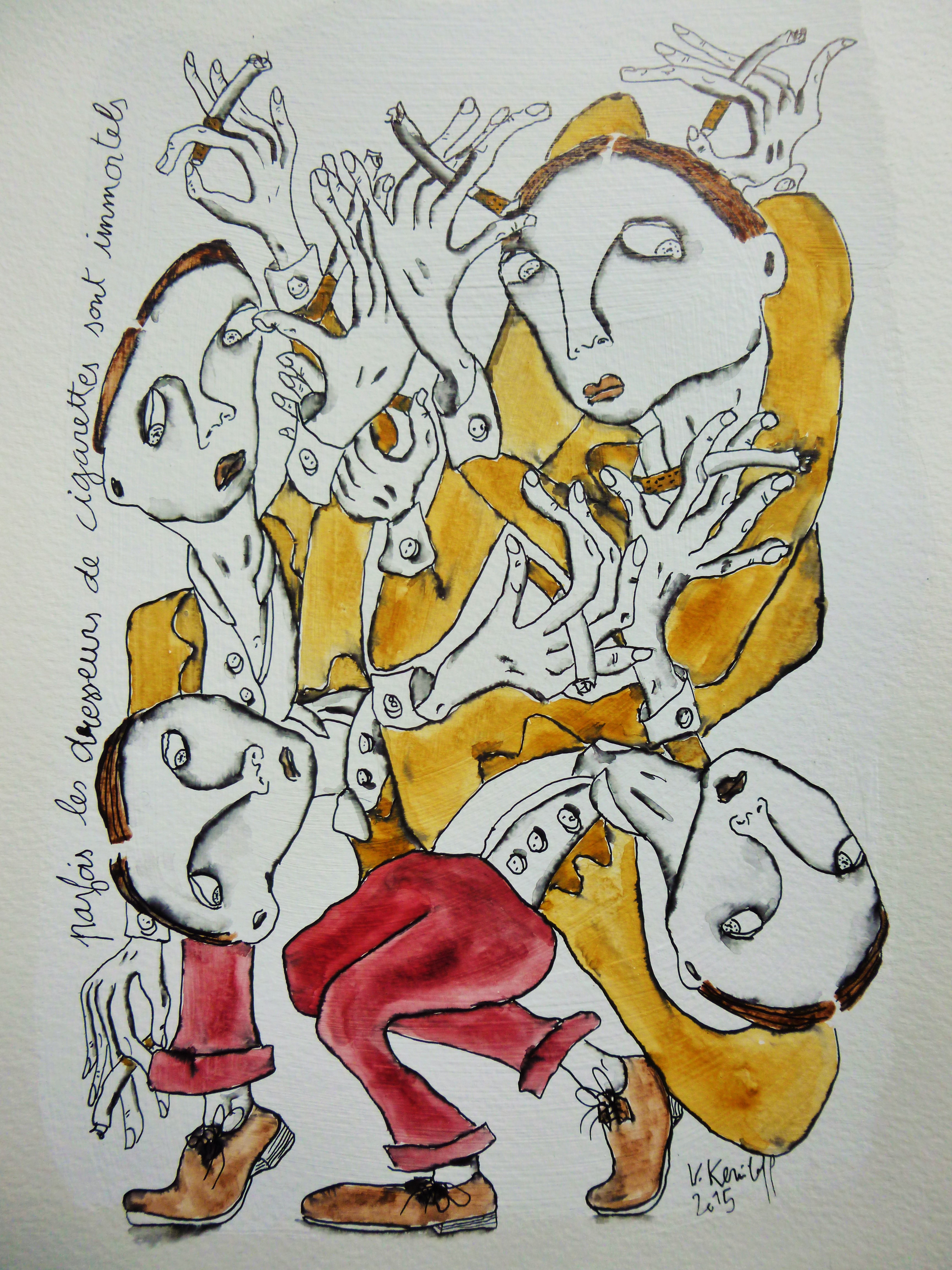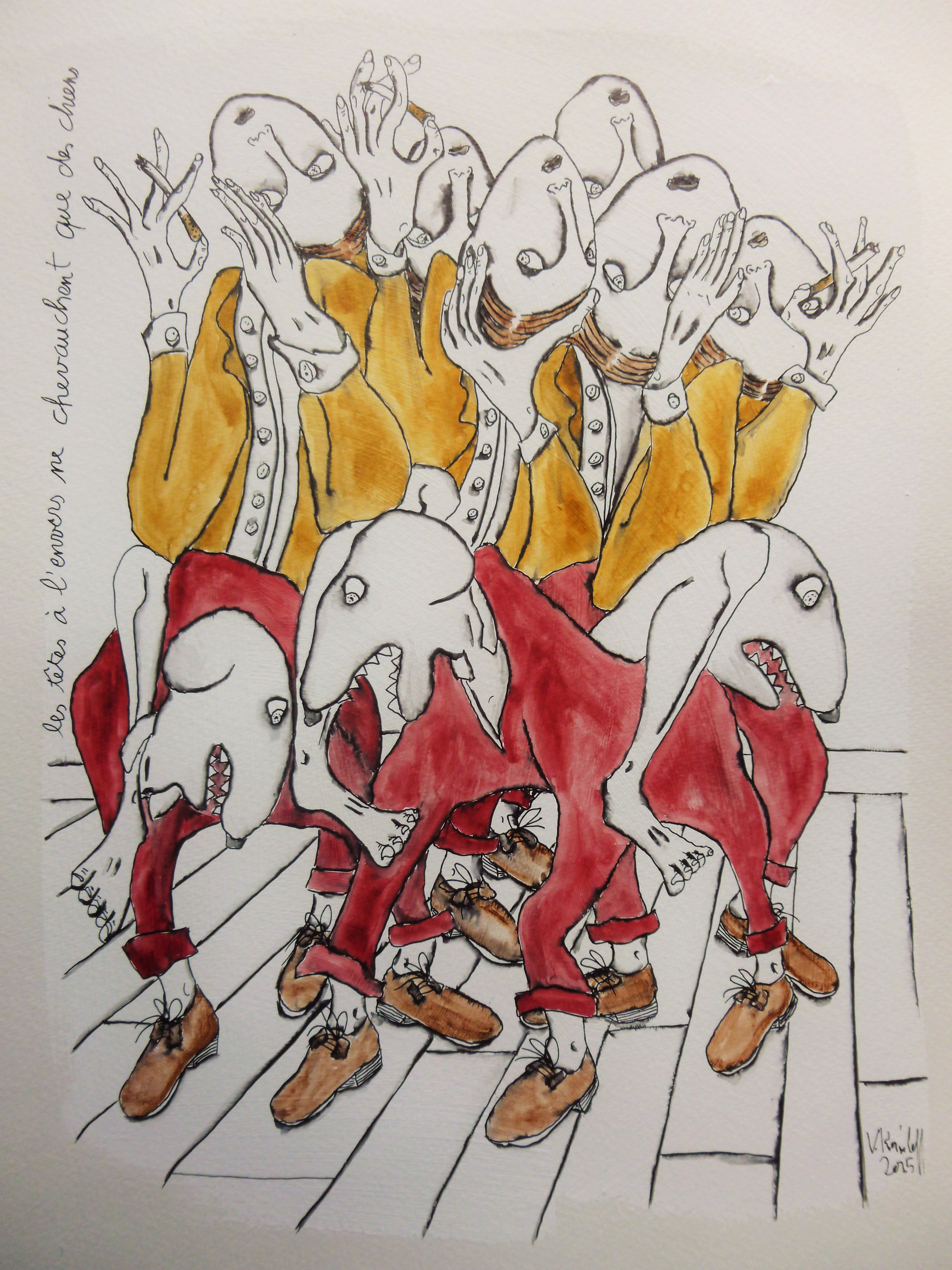 (gesso, aquarelle, acrylique et encre de Chine sur papier, 40/30cm.)