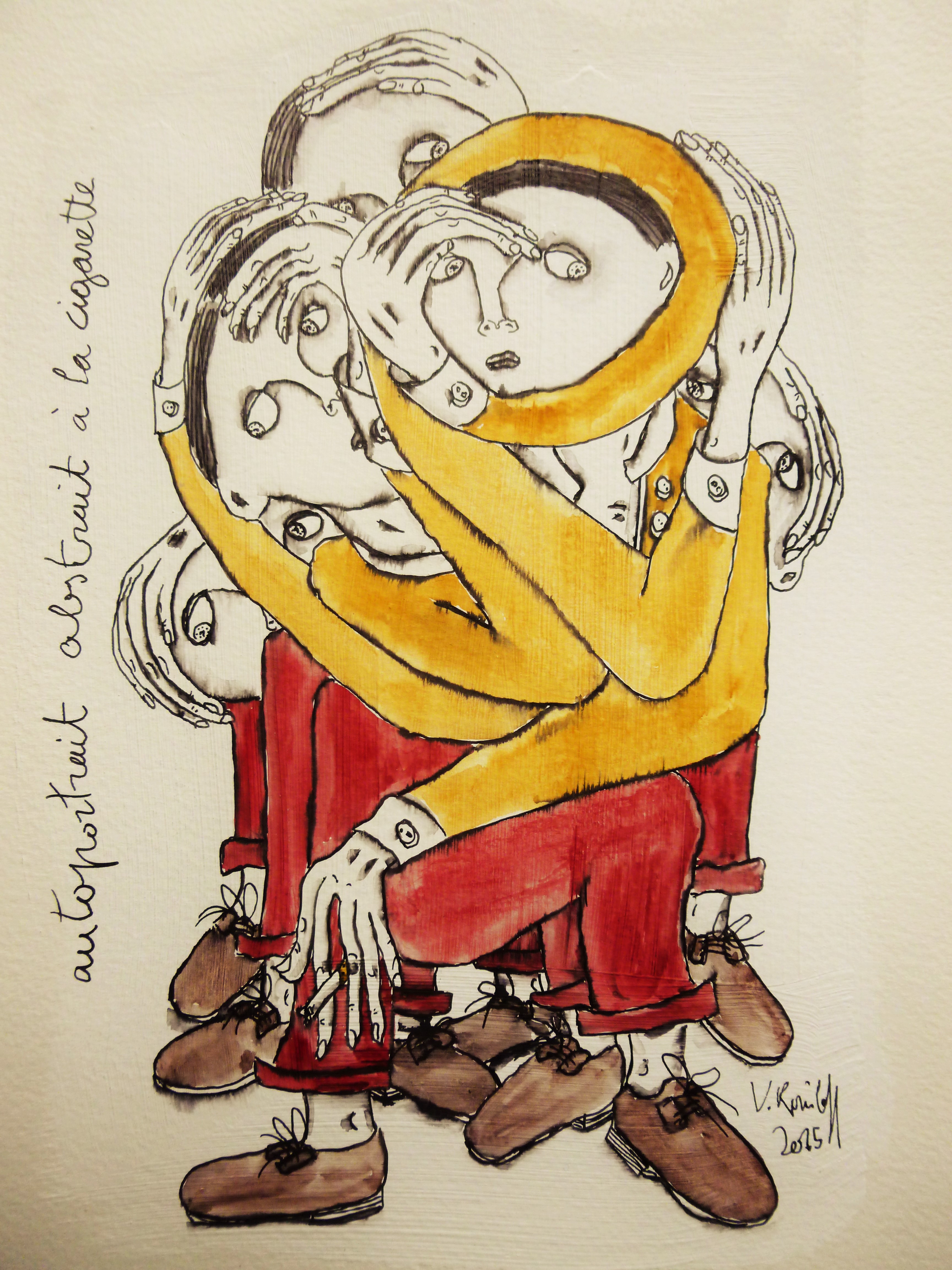 (gesso, acrylique, aquarelle et encre de Chine sur papier, 50/40cm.)