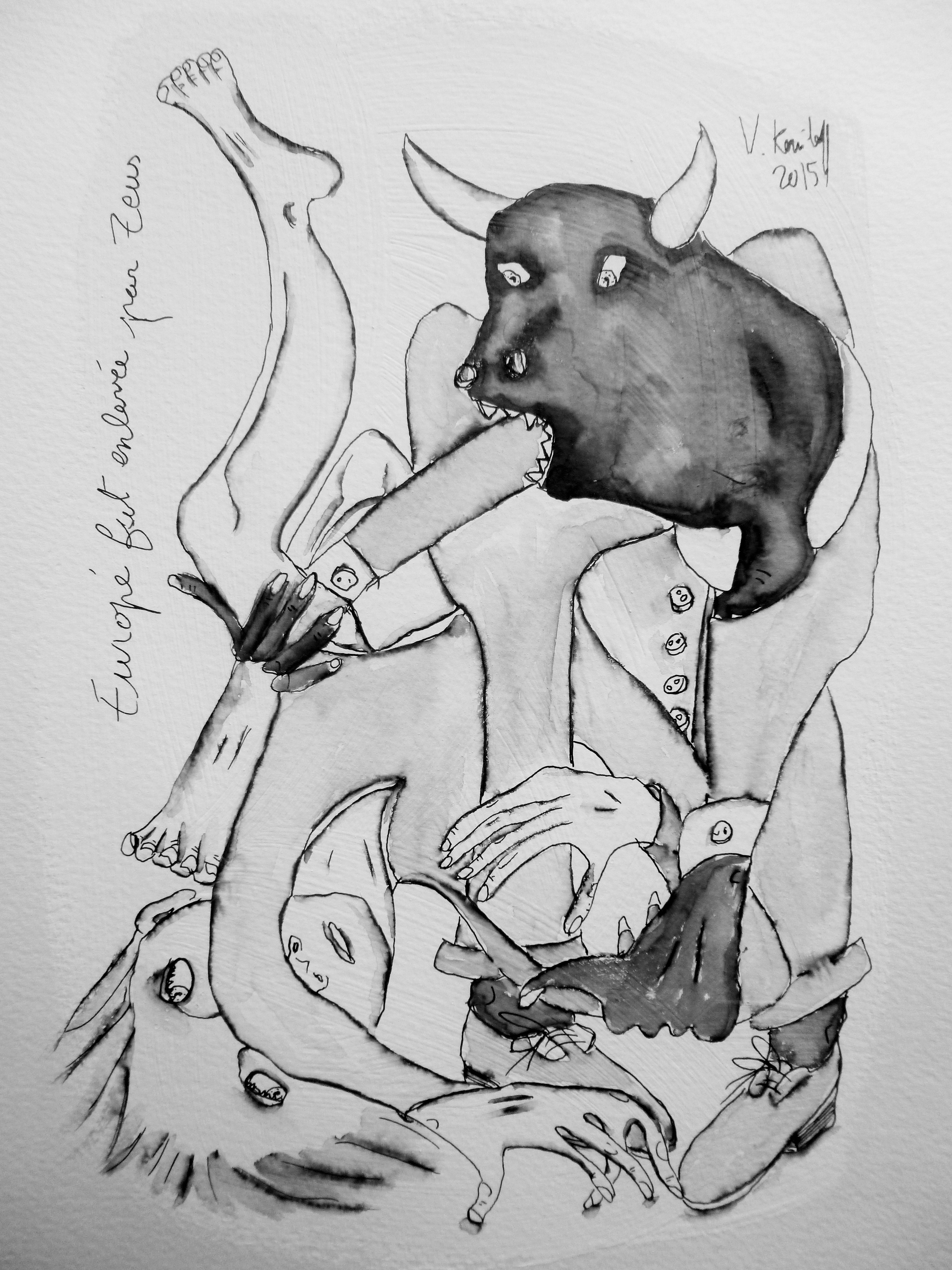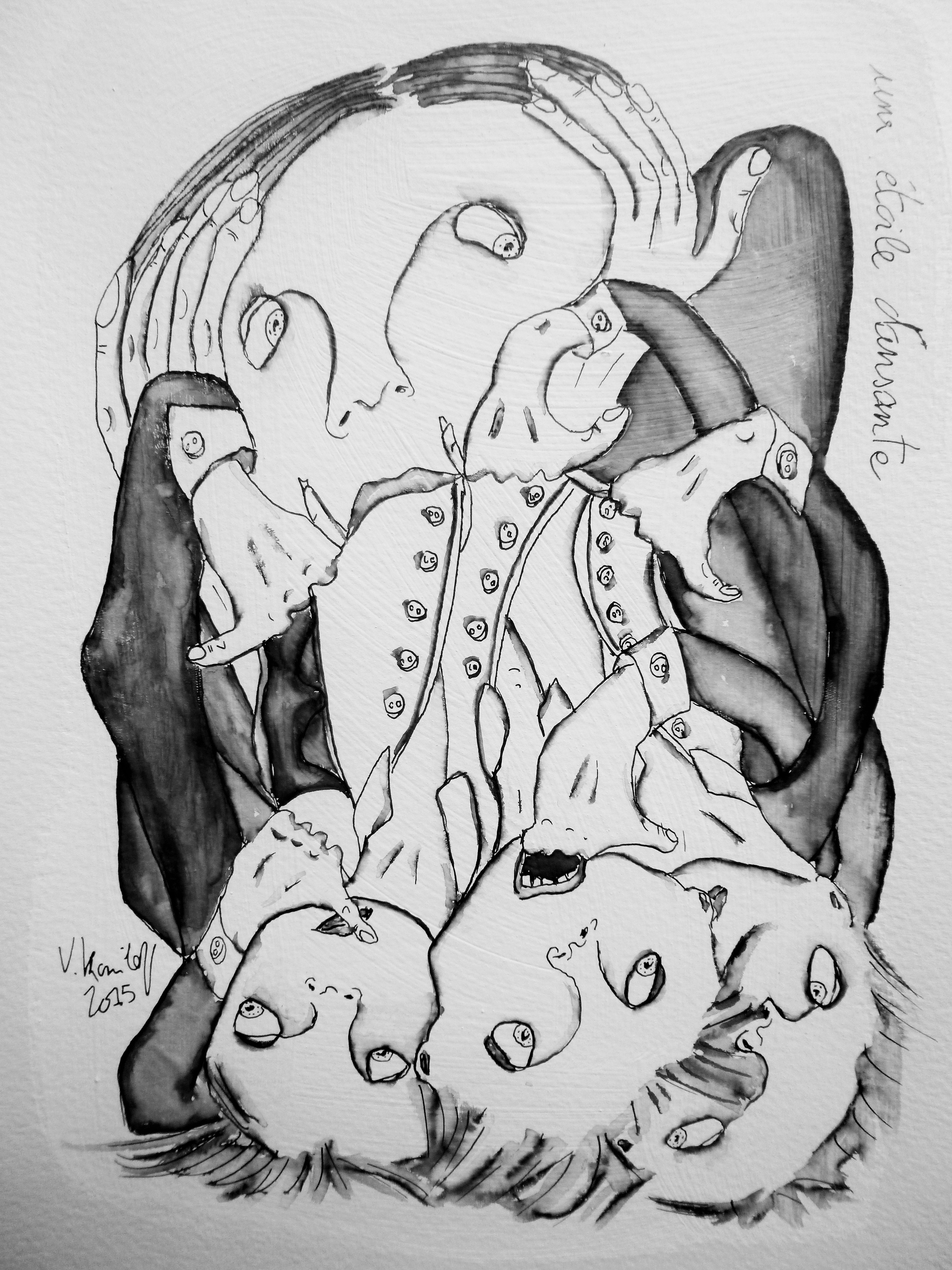 (gesso et encre de Chine sur papier, 30/20cm. *Illustration de l’essai à paraître « La rame à l’épaule » du maître de conférence Baptiste Rappin aux éditions Ovadia.)
