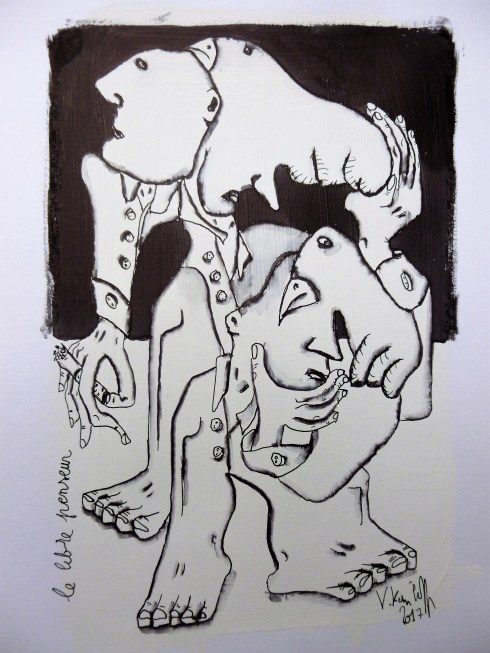 (acrylique et encre de Chine sur papier, 40/30cm.)