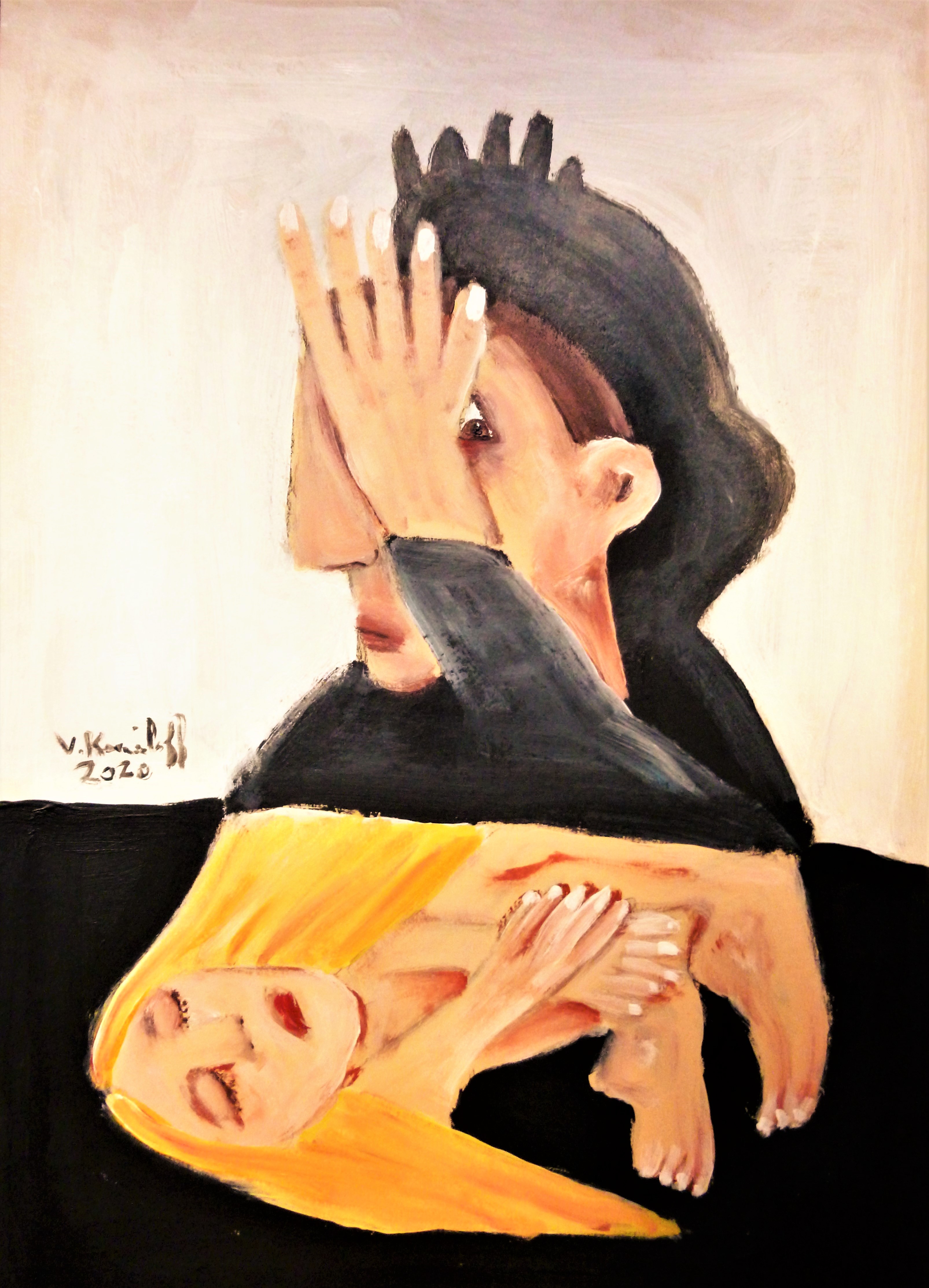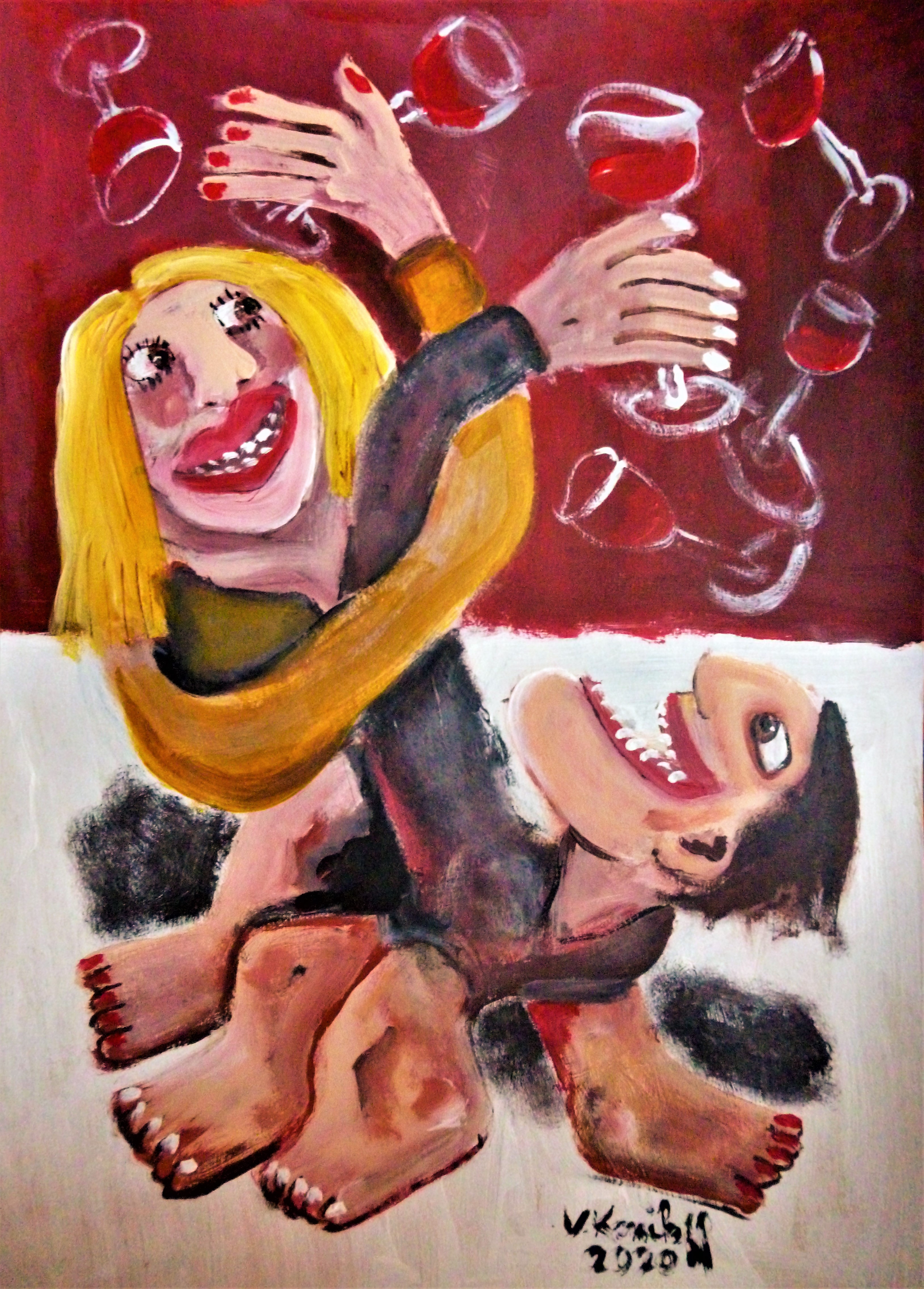 *Acrylique sur papier naturel, 40/30cm, peinture inspirée du poème éponyme de Charles Baudelaire (Les fleurs du mal) (extrait) « …/Agile et noble, avec sa jambe de statue. Moi, je buvais, crispé comme un extravagant, Dans son œil, ciel livide où germe l’ouragan, La douceur qui fascine et le plaisir qui tue./… »