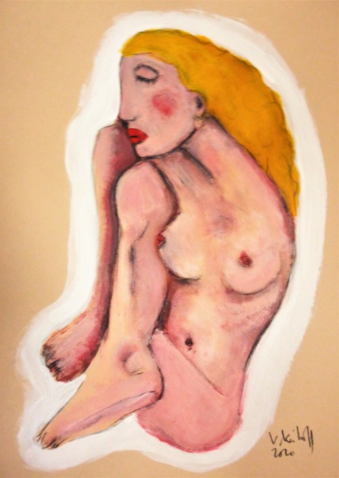 *(« Tout Entière », Acrylique et pierre noire sur papier naturelle, inspirée du poème éponyme de Baudelaire (Recueil : Les fleurs du mal)