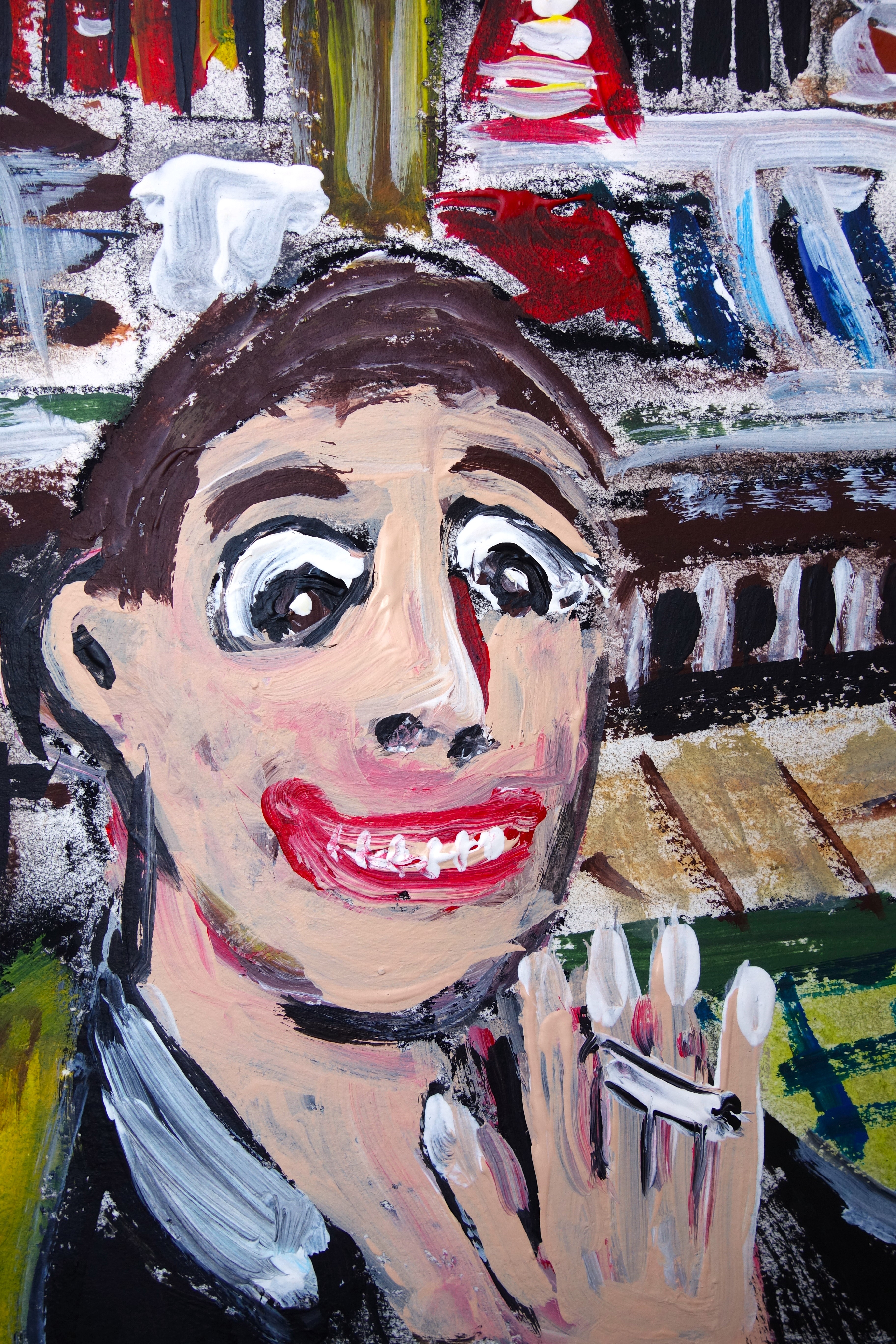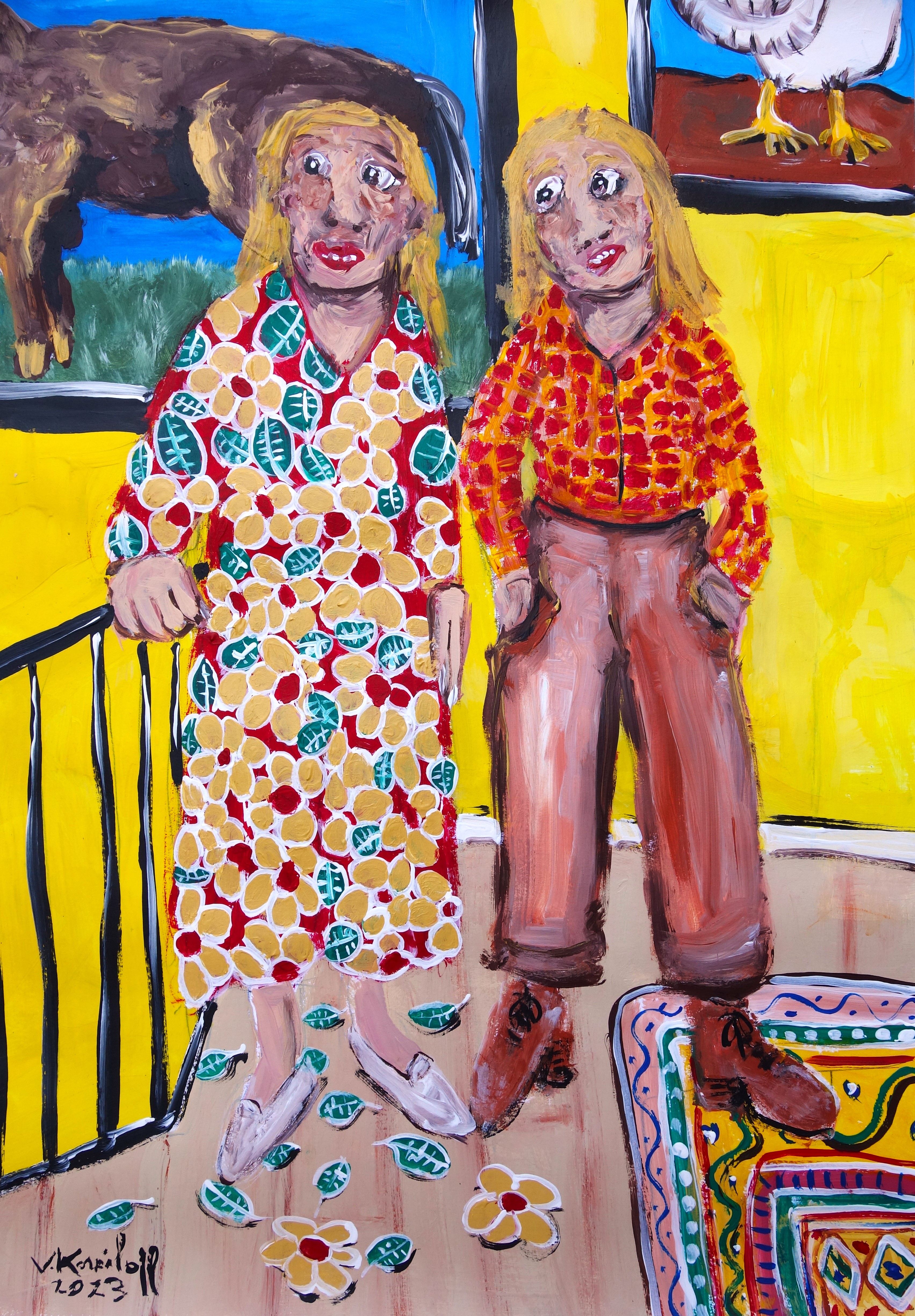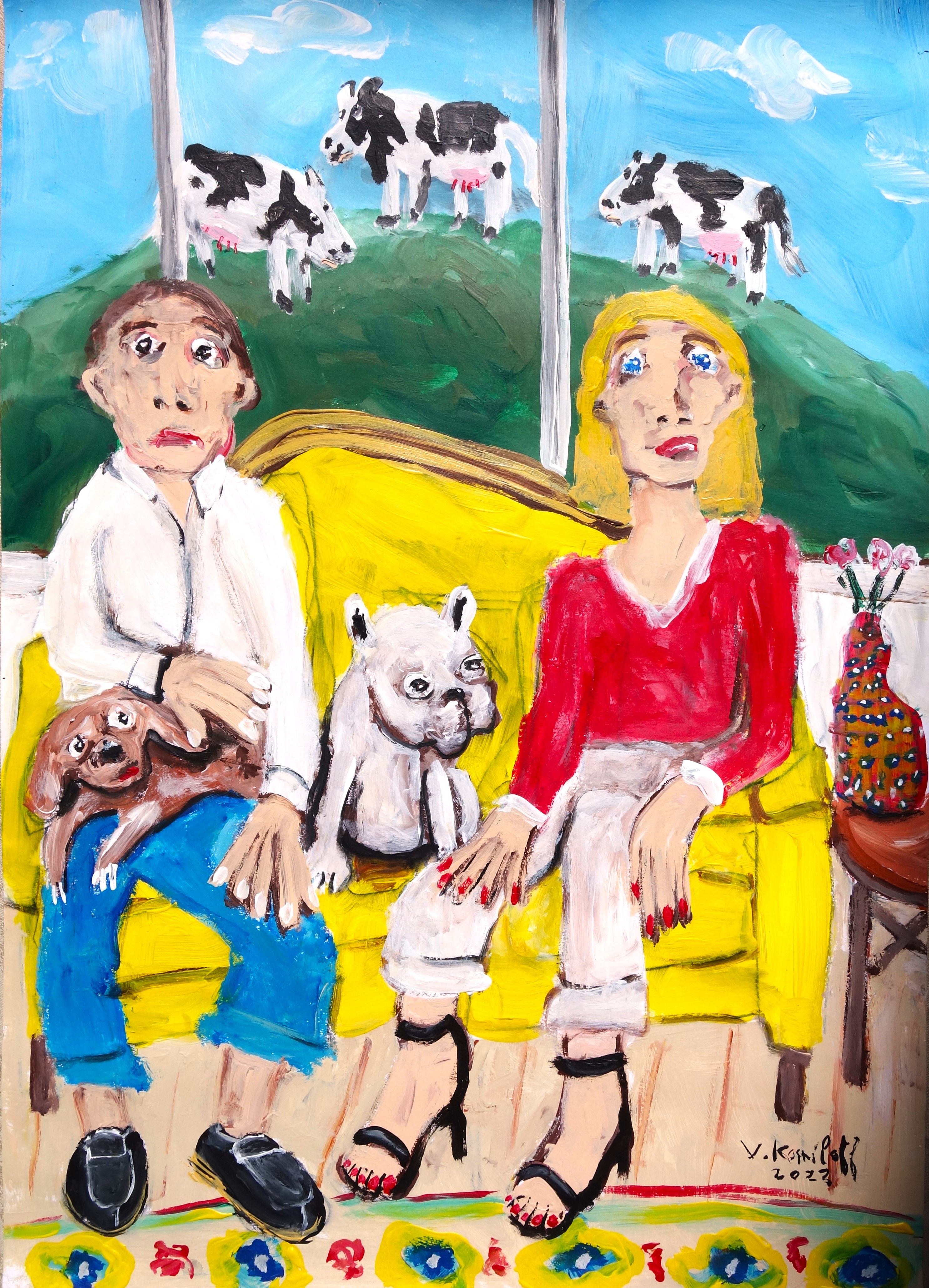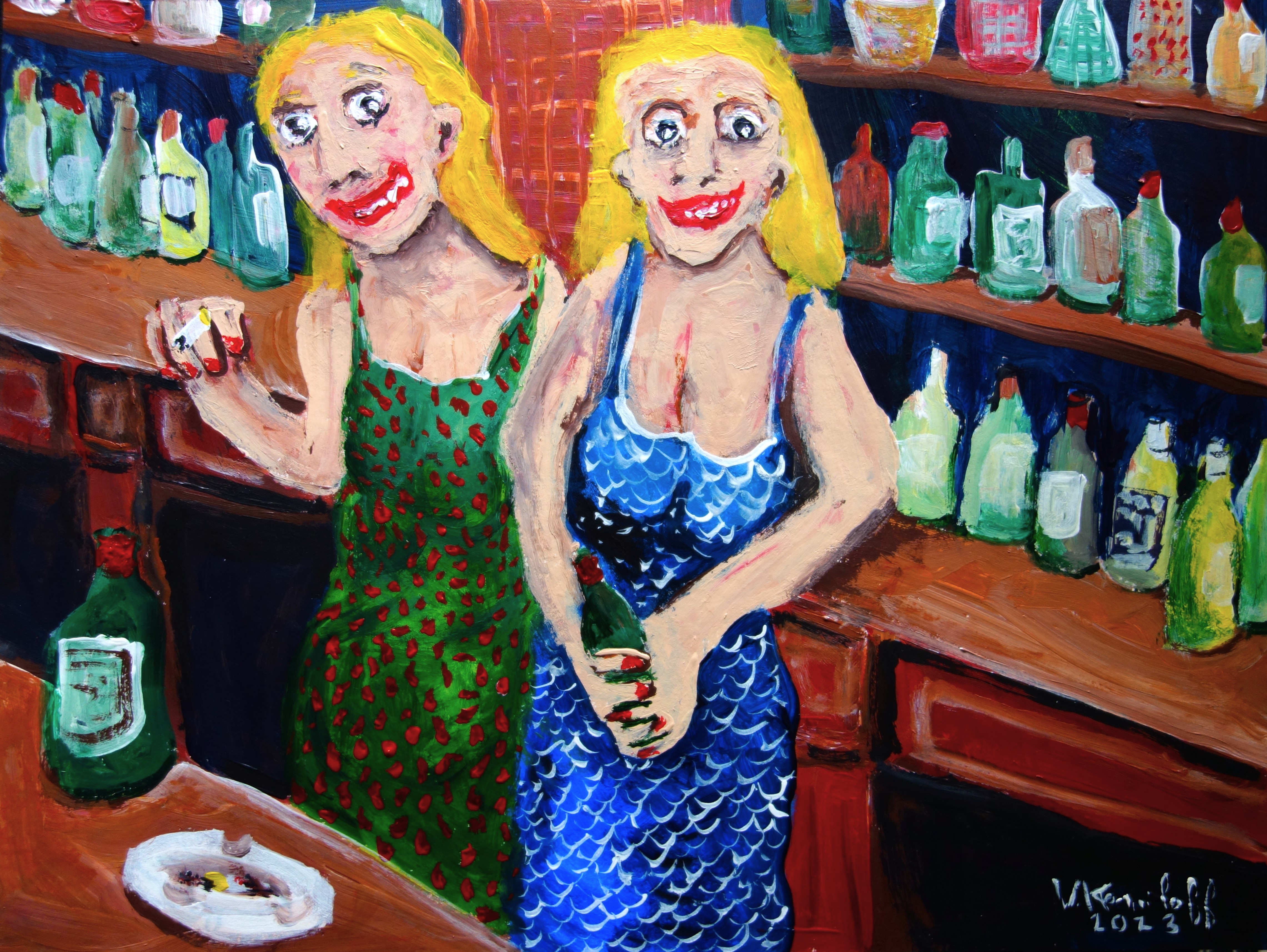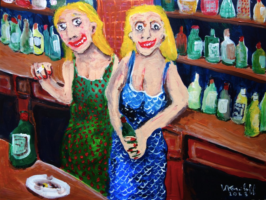 …/ elle fut attristée de comprendre qu’il devait avoir des problèmes d’argent. En effet, Benoit lui avait répondu que le budget du matériel de peinture était suffisamment onéreux pour voir des femmes à poil. (Acrylique sur papier, 60/40cm. Photos œuvre et détails.)