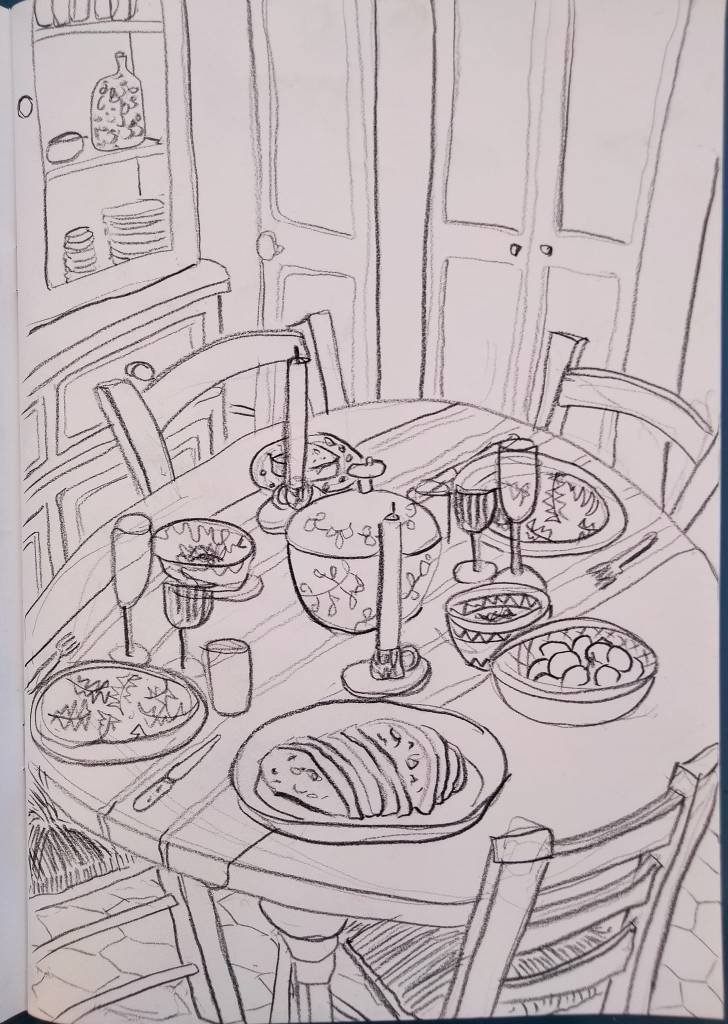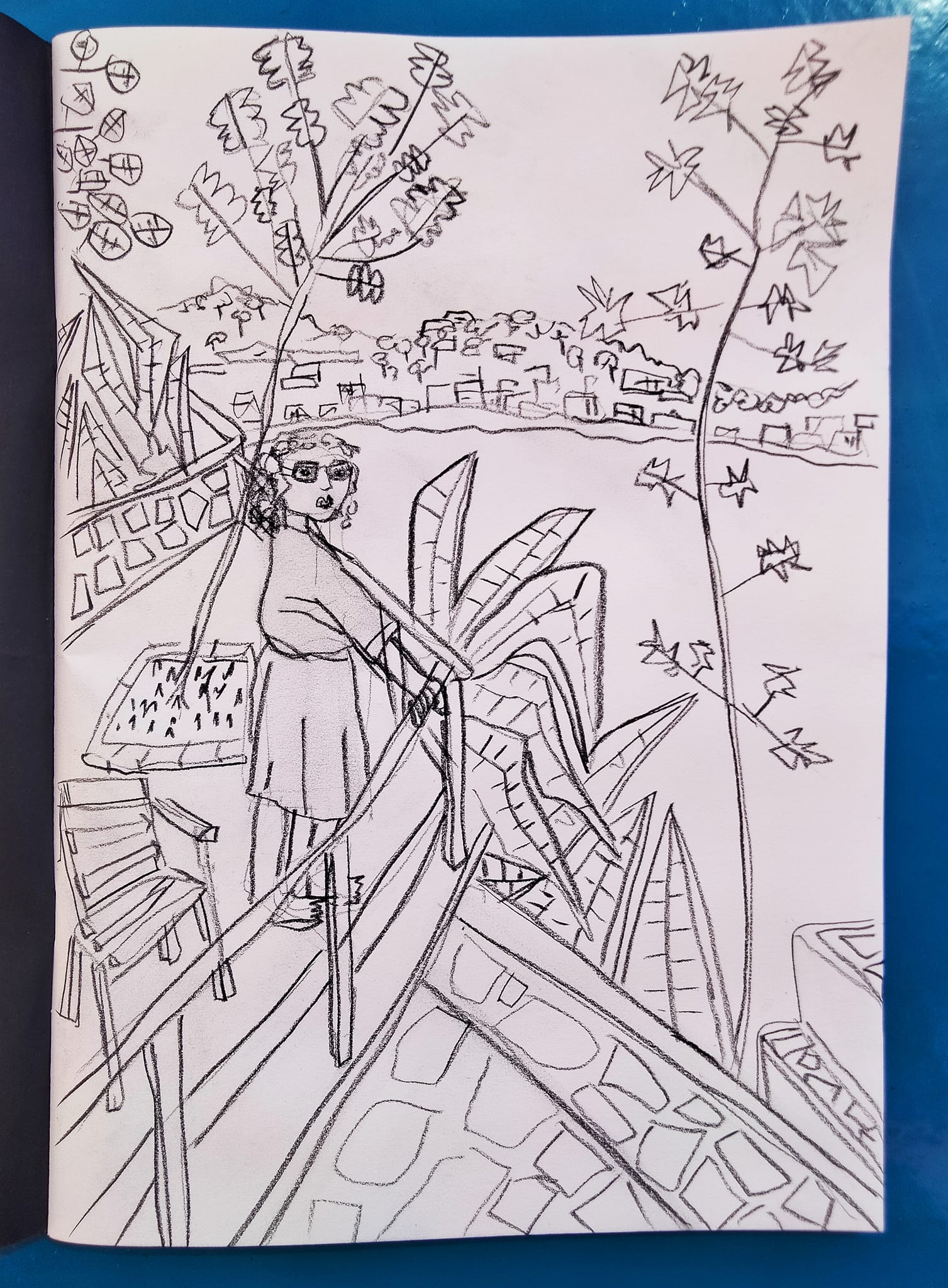 Dessins à la pierre noire, carnet de voyage, Menton et Villefranche-sur-mer…