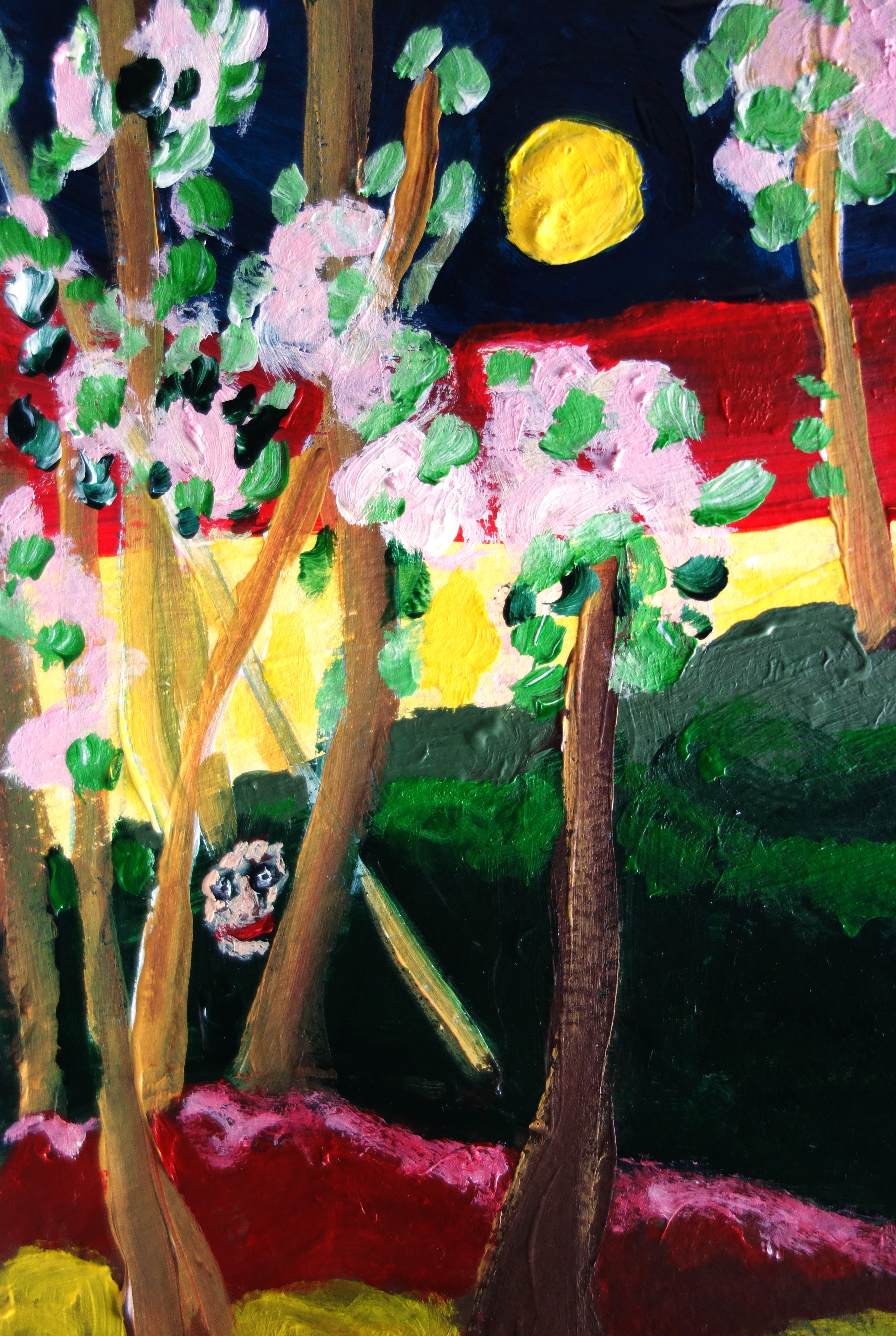 « Un vieux faune de terre cuite Rit au centre des boulingrins, Présageant sans doute une suite Mauvaise à ces instants sereins/… » (« Le faune », Verlaine, extrait.) « Le faune », acrylique sur papier, 30/20cm.