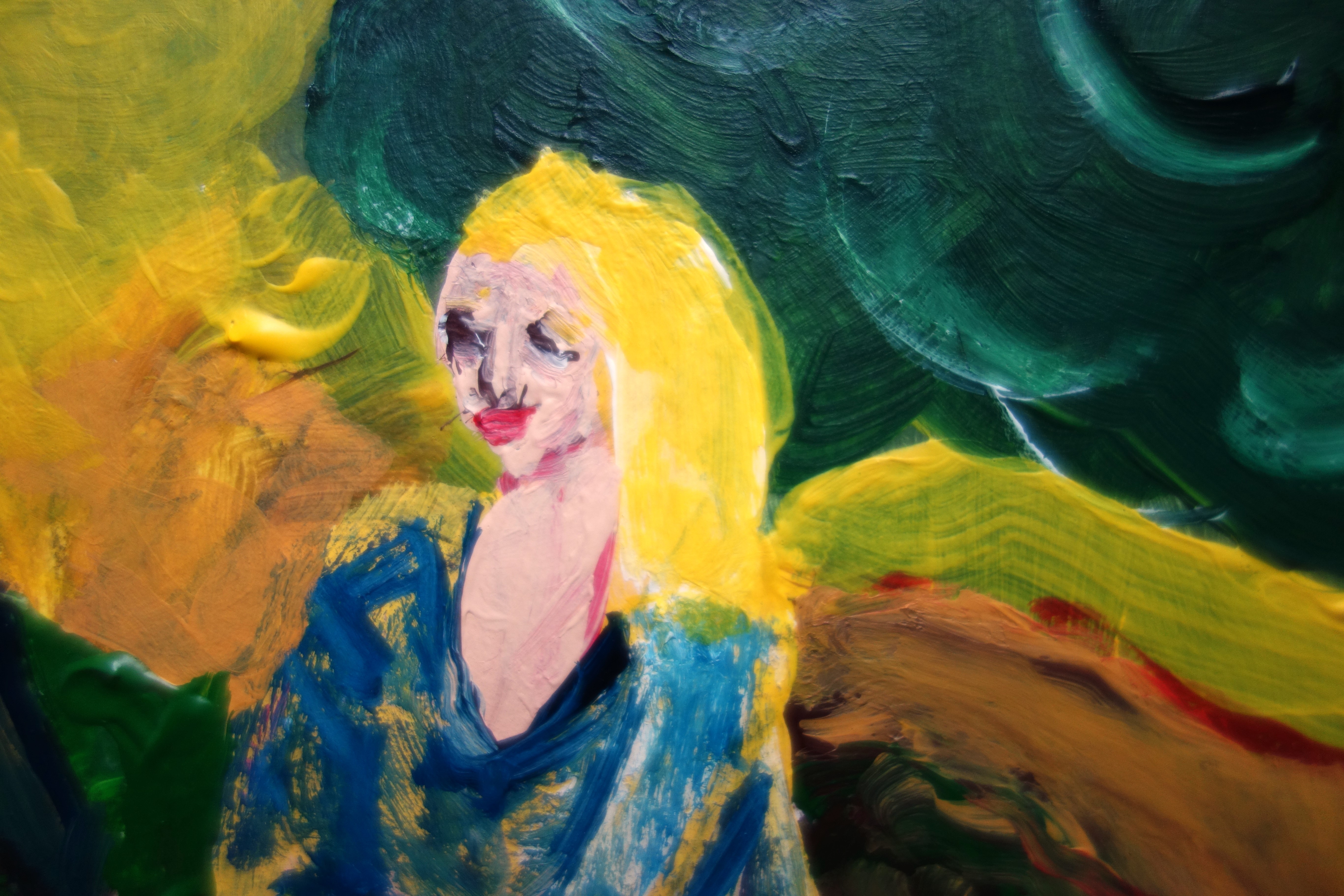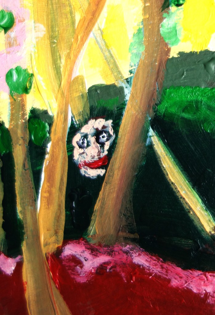 « …/ — Do, mi, sol, mi, fa, — Tout ce monde va, Rit, chante Et danse devant Une belle enfant Méchante /… » (« Colombine », extrait, Verlaine) « Colombine », acrylique sur papier, 30/20cm.